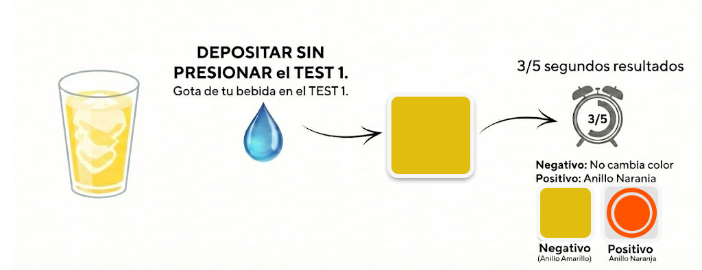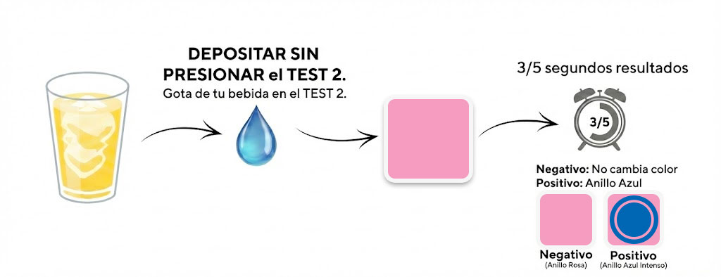 No. Solo aplicas una gota de tu bebida sobre el test. El resultado aparece en 3 a 5 segundos.